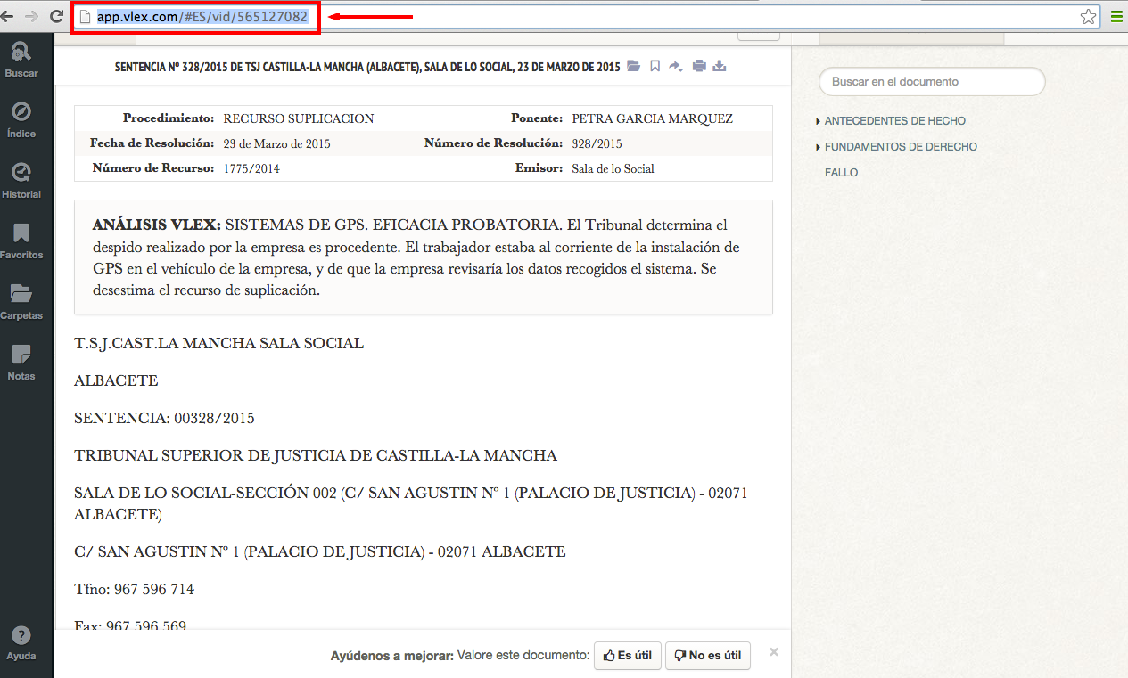 También es posible compartir de froma rápida y ágil una sentencia o cualquier documento de tu interés a través de redes sociales.
